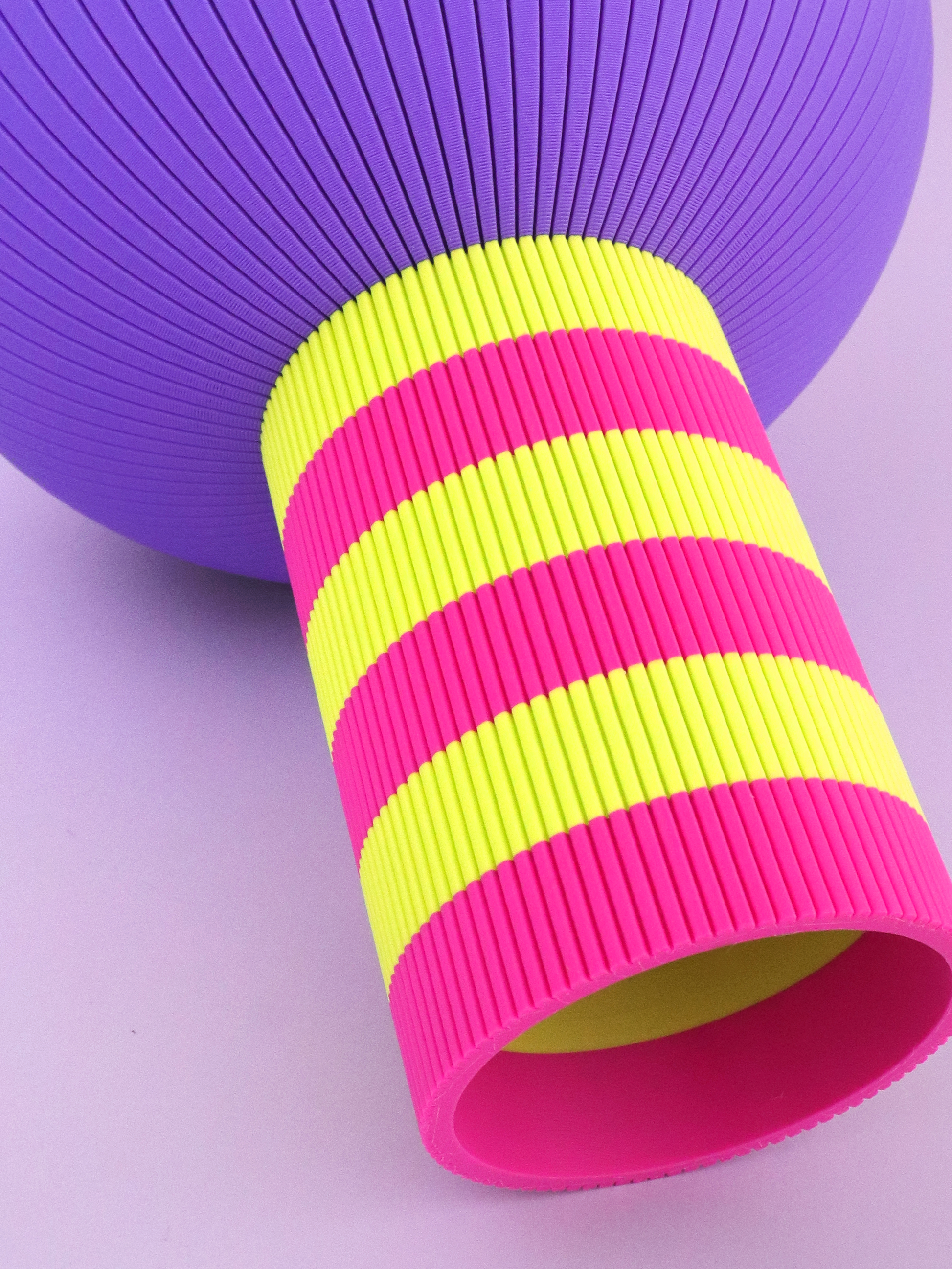 Mushroom vases' highly textured shapes are solid, thick and watertight; made from PLA material (Polylactic Acid, a bioplastic made from fermented plant starch + sugar).